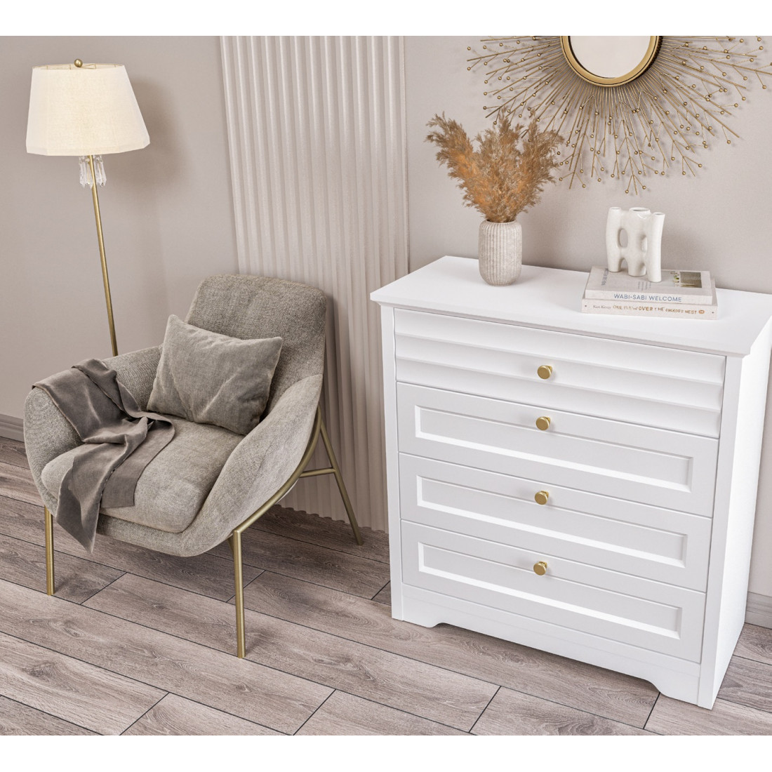 Денвер – это новая коллекция корпусной мебели для спальни, гостиной и столовой. Прямые строгие линии в сочетании с легкой горизонтальной волной на фасадах придают мебели элегантный и уверенный вид. Белый матовый цвет мебели, любимый многими за универсальность, можно сочетать с любым оттенком стен и пола. Округлые металлические золотые ручки разбавляют строгий и лаконичный вид фасадов и добавляют интерьеру утонченности.