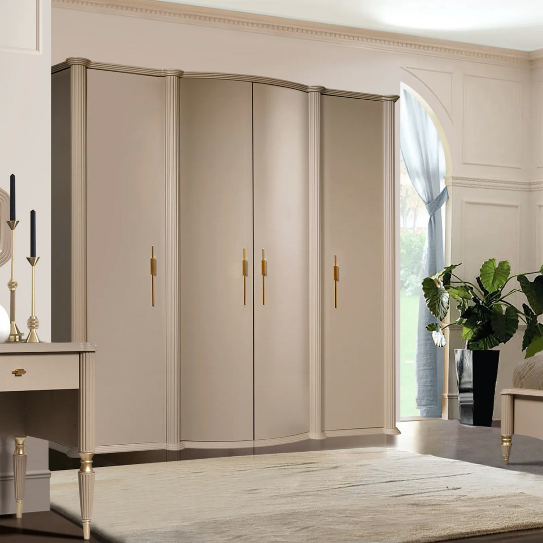 Четырехстворчатый шкаф для одежды Моника (Капучино эмаль)
