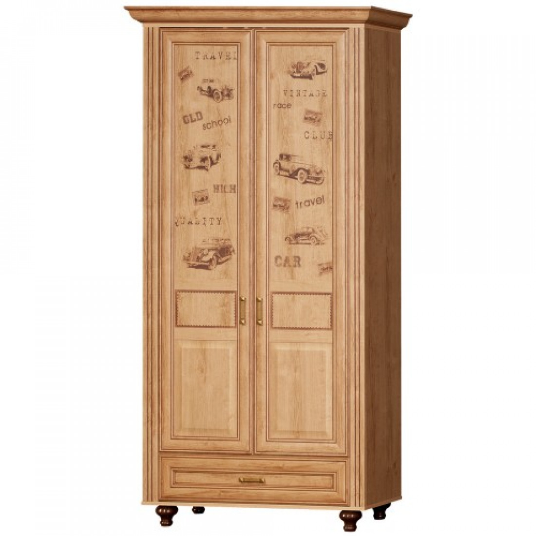 Корпус: ДСП, декор – дуб ридинг. Основание кровати – ламели