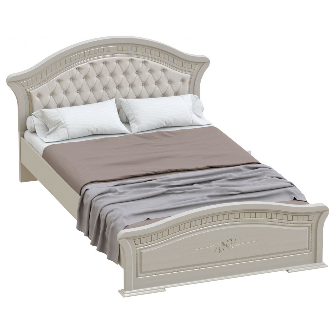 Двуспальная кровать коллекции Николь - воплощение стиля и элегантности. Идеально впишется в любую спальню. Элементы кровати декорированы ненавязчивым тиснением.