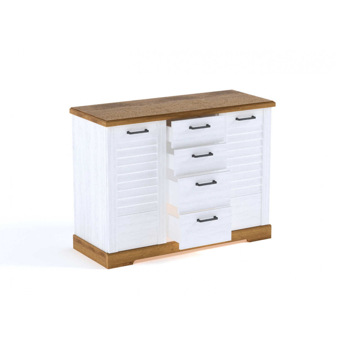 Комод Кантри является представителем коллекции «Кантри». Романтичный и спокойный внешний вид каждого элемента колеккции поможет сделать ваше жилое пространство по-настоящему уютным и изысканным. «Кантри» - это несколько вариантов расцветки, уникальный дизайн, разнообразие модульной системы и отсылки к натуральным материалам.