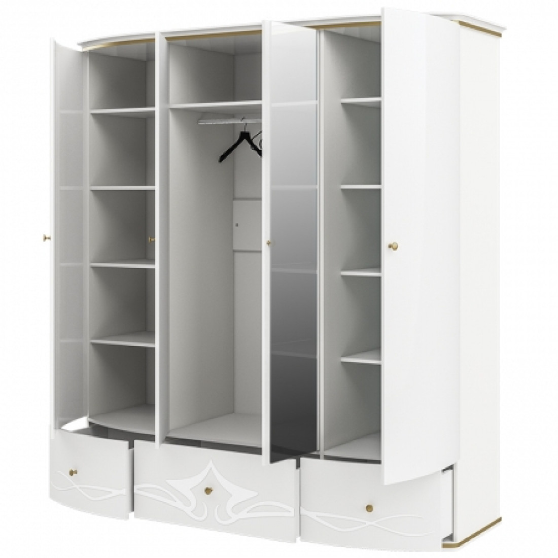 Шкаф для одежды Либерти МН-313-04 из новой коллекции белорусского производителя - это светлые тона, эксклюзивное дизайнерское оформление, все это выглядит как уникальное решение для комнаты отдыха. Приятным дополнением служат изящные металлические ручки и система демпфирования для систем выдвижения!