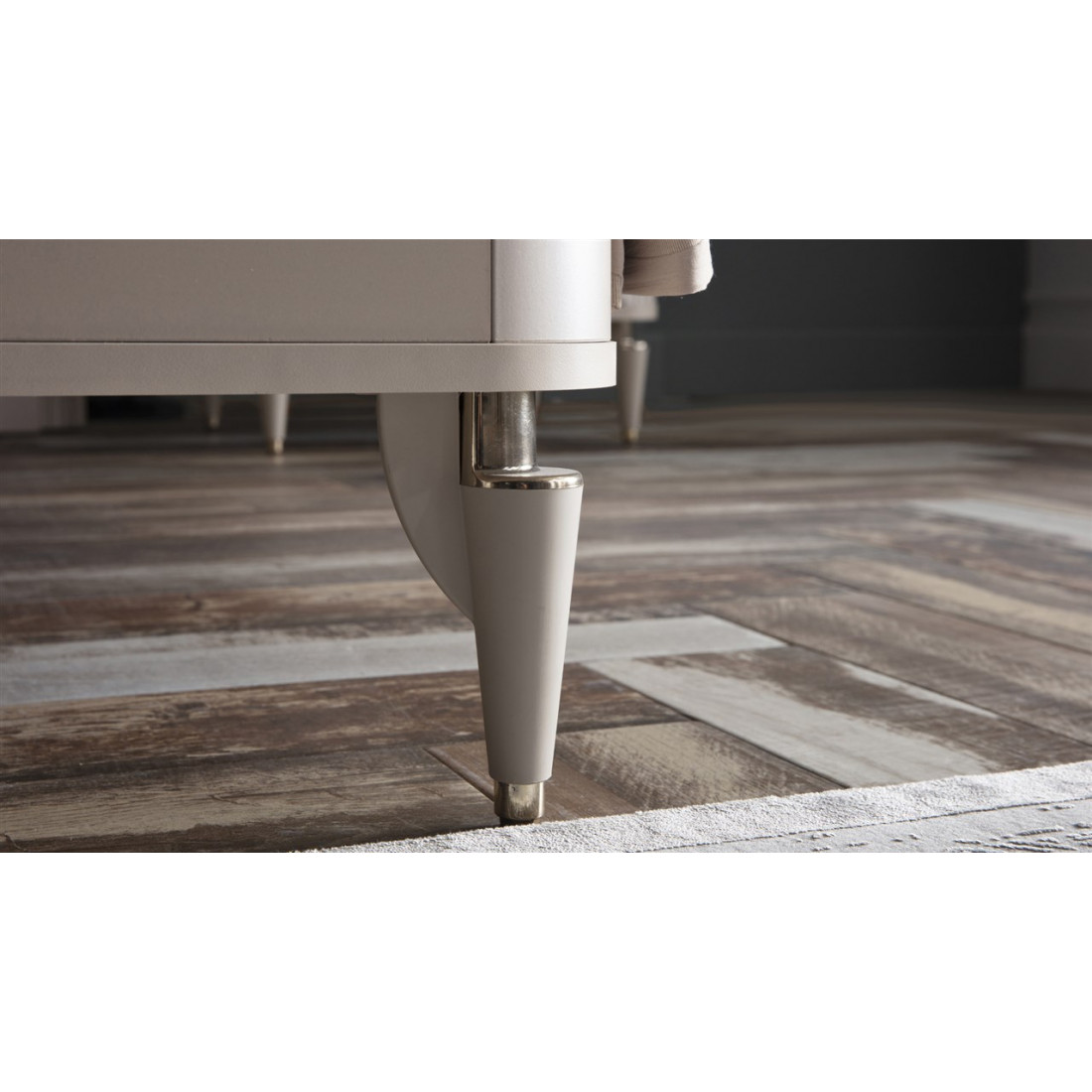 Туалетный столик Санвито SANV-23 один из элементов турецкой коллекции SANVITO. Прекрасное дополнение интерьера спальни, гостиной, залы. Столик обладает сравнительно небольшими размерами 1,170 мм x 470 мм x 830 мм. Может использоваться как дамский столик или как комод. Имеет два больших вместительных выдвижных ящика по центру, и полки для хранения за дверцами фасадов. Кремовый оттенок фасадов, наряду с рифленой  поверхностью комбинируется с древесной фактурой ящичков. Оригинальный дизайн и теплые, нежные тона в сочетании с функциональностью столика-комода Санвито SANV-23 делают его изящным и привлекательным.